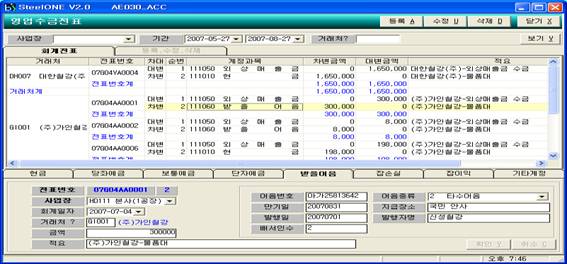1) 수금전표 : 매출처리, 이동처리, 임가공 청구처리