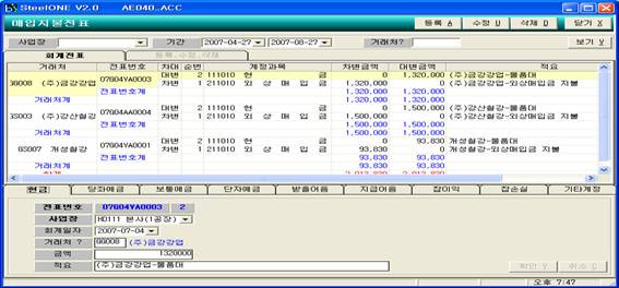 2) 지불전표 : 매입처리, 이동처리, 외주가공 정산처리