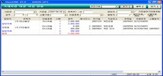 1) 조회 : 사업장, 기준일,취득처,담당자,기준일만기어음포함,금액,소멸구분,어음종류,