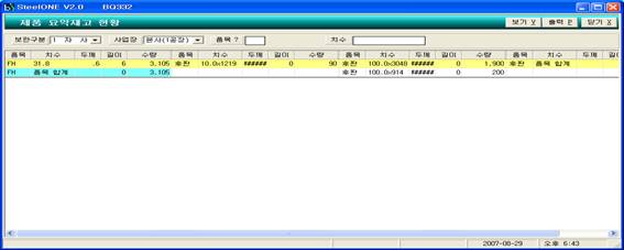 - 제품에 대한 상세 정보를 요약해서 보여줌(하치장, 품목, 치수, 길이)