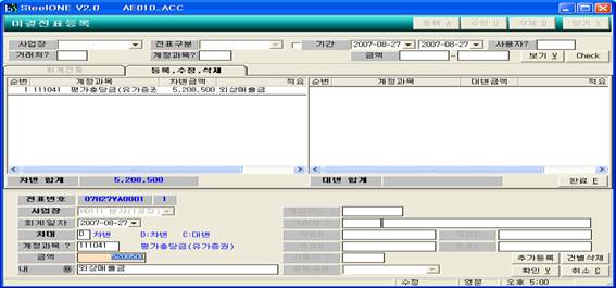 - 차변, 대변이 틀린 상태에서 완료 버튼을 클릭하면 "차,대가 틀립니다. 계속하시겠습니까?" 라는 메세지가 나오면 "예" 버튼을 클릭하면 차대가 틀린 상태로 종료가 된다.